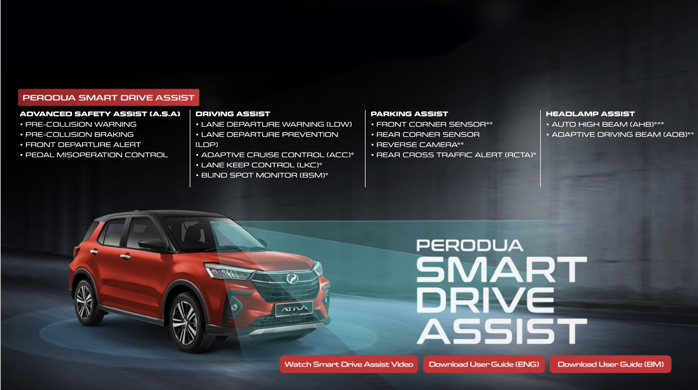 Memandu tanpa rasa risau. Datang dengan pelbagai ciri keselamatan pintar yang moden dan boleh dipercayai.